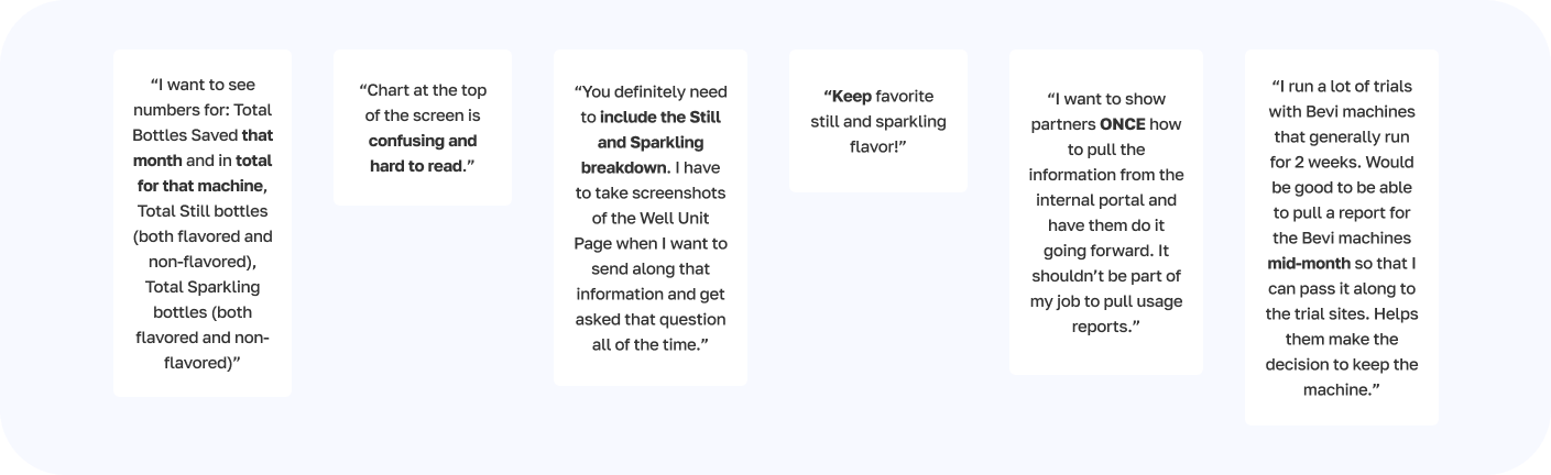 It was extremely important to make the usage report scannable and easy to quickly understand.