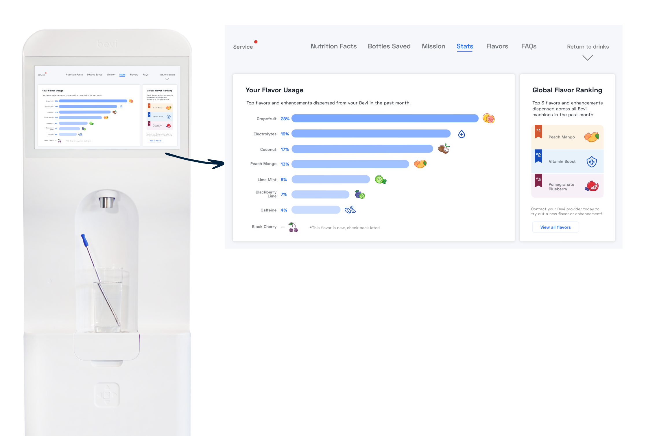 Boosting user enjoyment with a cool statistic and improving visibility of all Bevi flavor offerings!