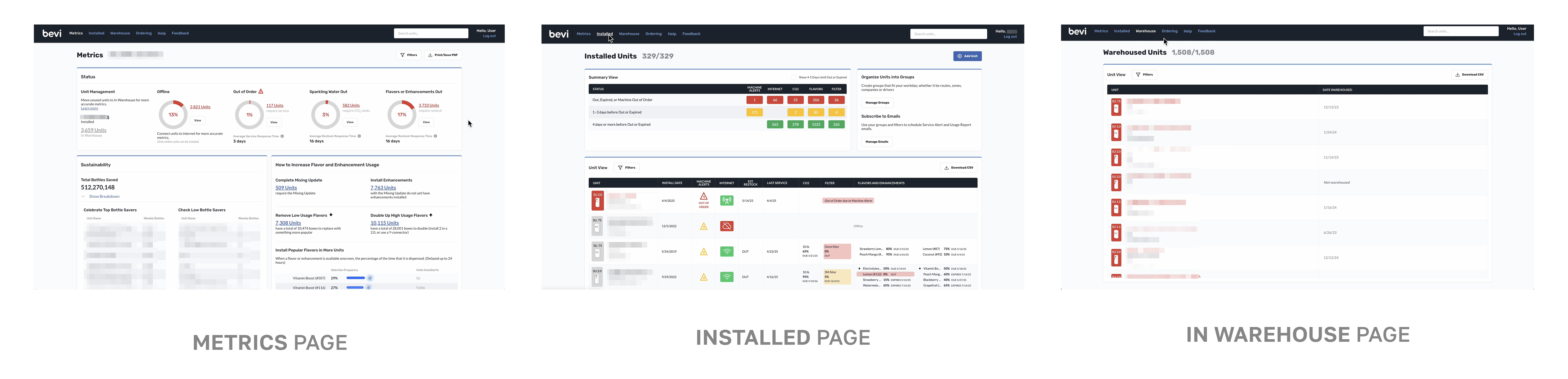 Below is a snapshot of the most important pages on the well, which help our users track quick high-level machine health data, inventory, service alerts, and more.