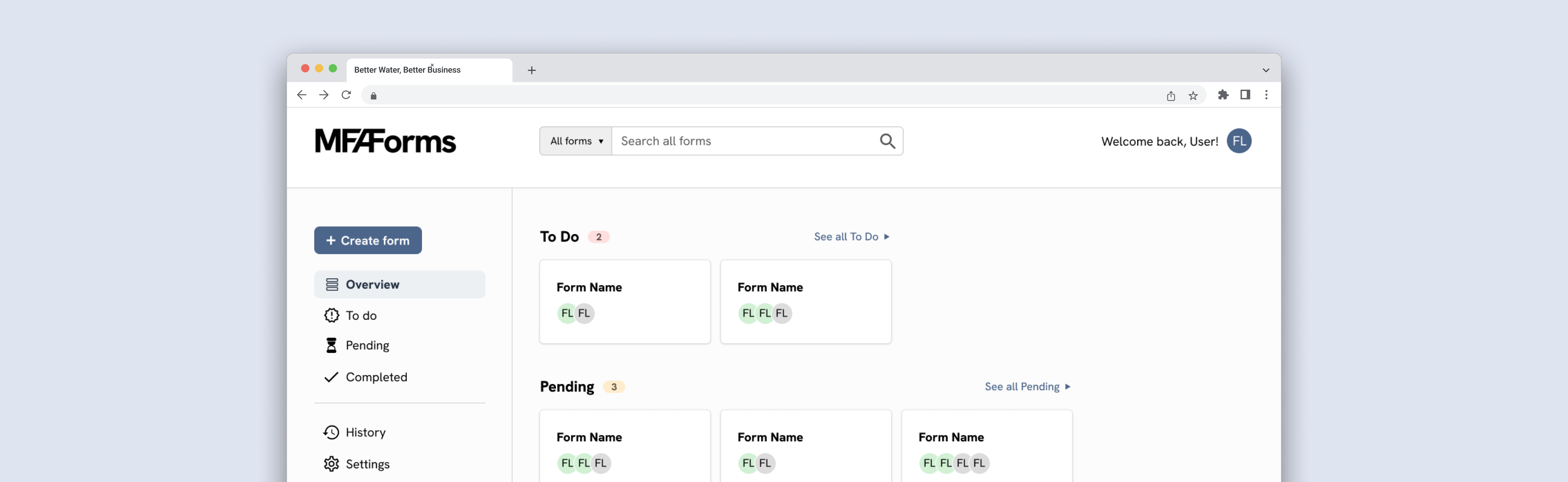 Build a web application that allows for a fully-digital workstream for all such forms.